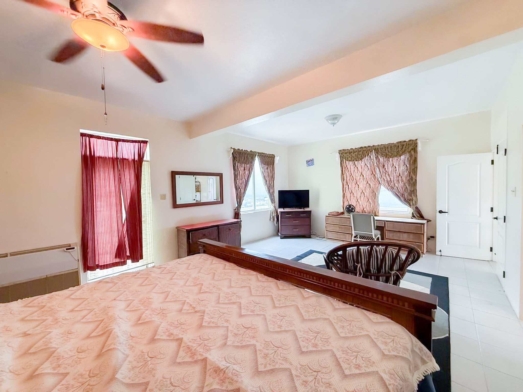 This fully furnished 1-bedroom home in Slaney gives you more than just space. You’ve got a large bedroom, walk-in closet, extra storage, and a wrap-around patio that opens up to views of Road Town, cruise ships, and nearby islands. Morning coffee with a sunrise view? That’s built in.