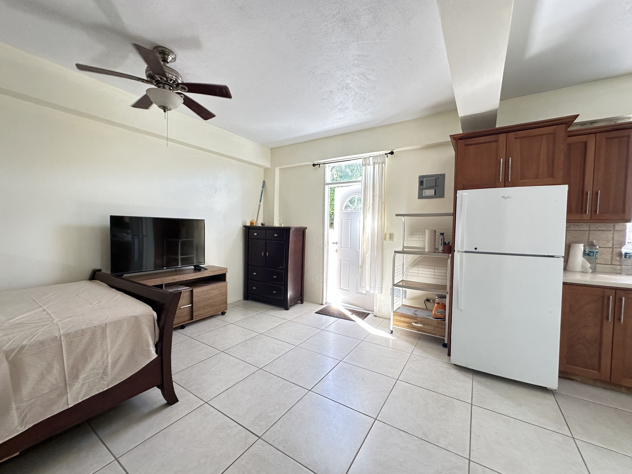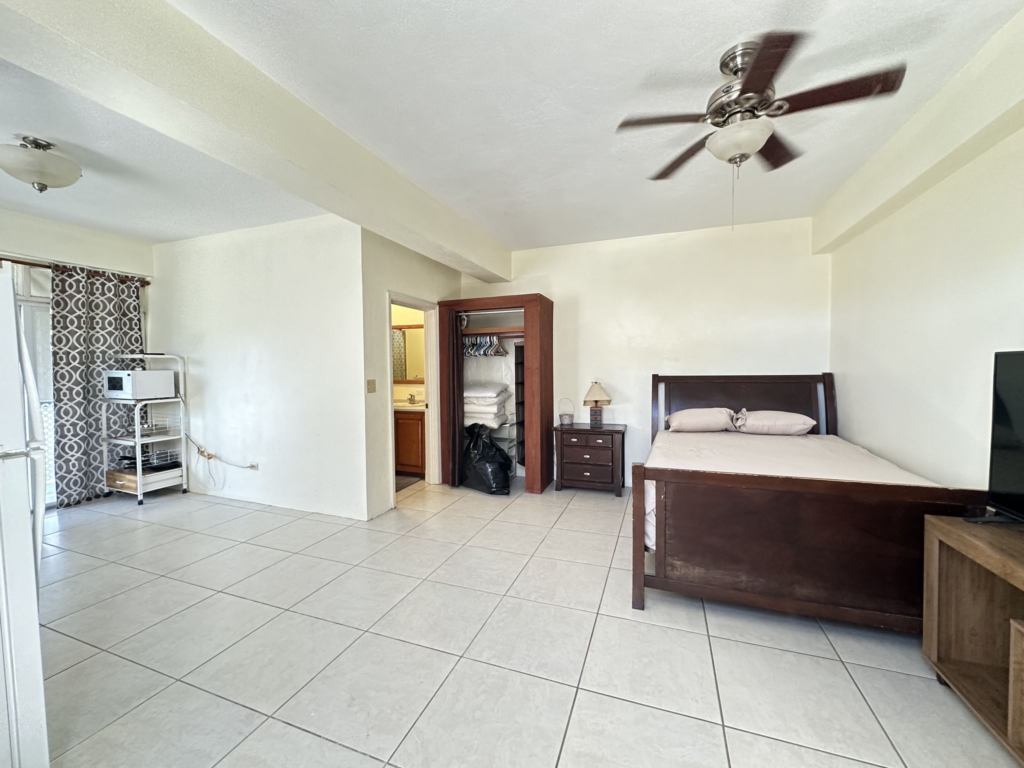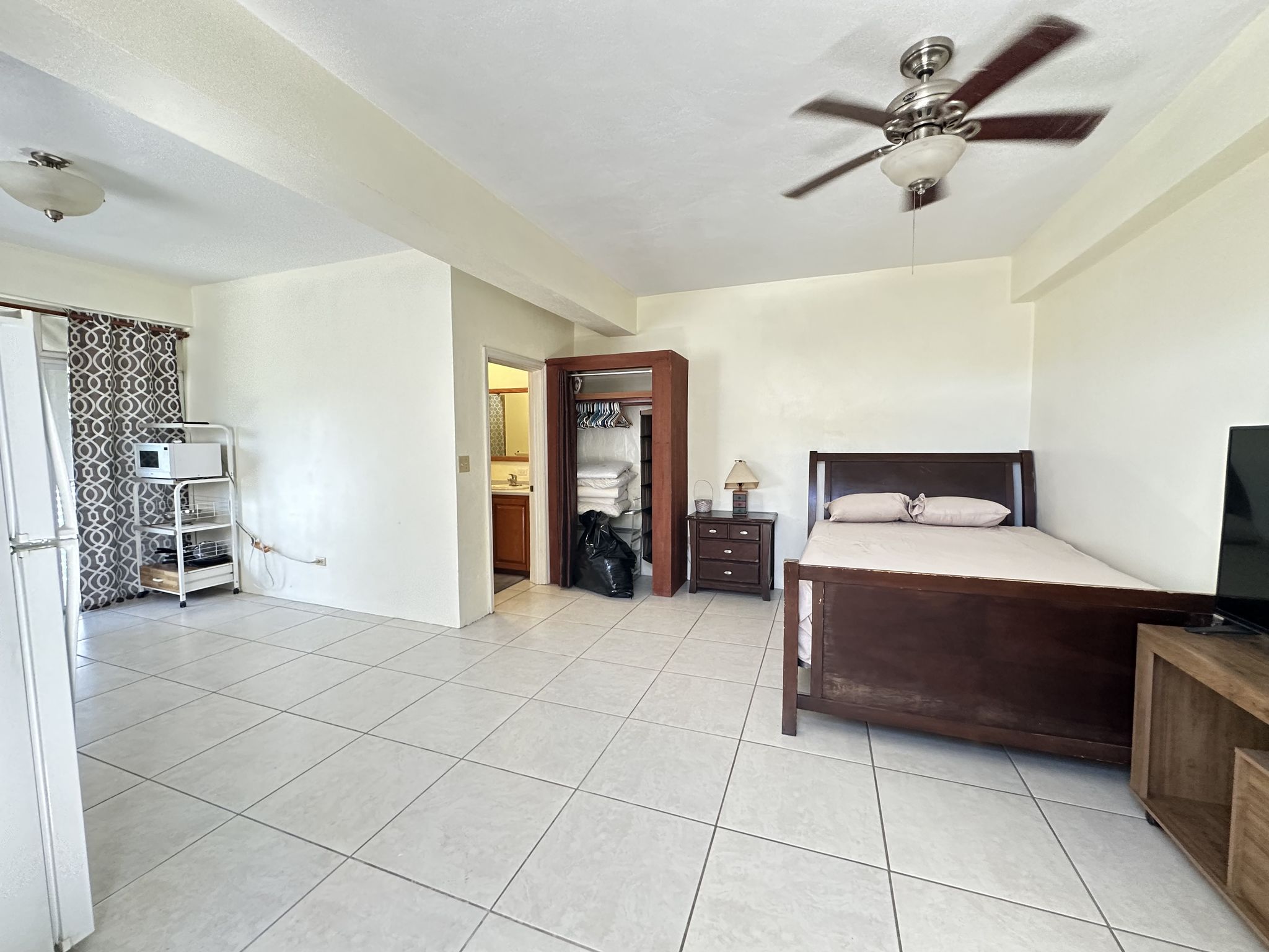 Private Living Area: Enjoy the comfort of a well-sized studio with ample closet space